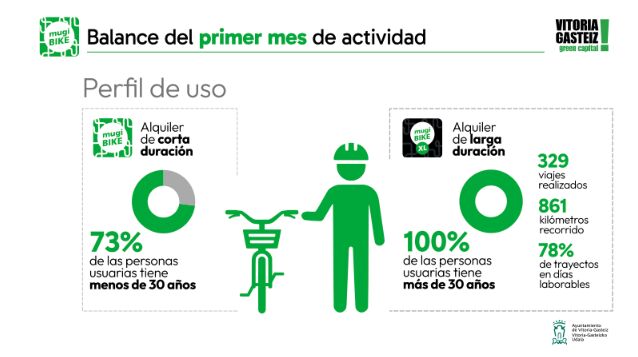 El servicio puede utilizarse de forma inmediata a través de la aplicación MugiBIKE. La alcaldesa de Vitoria-Gasteiz, Maider Etxebarria, asegura: «Estrenamos un servicio de alquiler de bicicletas de última generación, a la altura de una ciudad que es un referente en materia de movilidad ciclista…